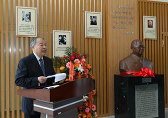 揭幕仪式首先由陈院士弟子、支部教师袁建平老师和陈建有书记、杨晓部长、陈立怡老师共同为陈院士雕塑揭幕;支部教师代表马卫华、孙冲以及研究生代表张鹏、尹豫皖为陈院士敬献花篮,全体参与人员向塑像鞠躬致敬;之后分别由祝小平老师作为陈院士弟子代表、支部孙冲老师作为青年教师代表以及研究所研究生尹豫皖同学作为学生代表进行发言,三位发言人分别以各自的角度表达了对陈院士的深切怀念和崇高敬意;最后校党委副书记陈建有书记讲话,指出陈院士的精神历久弥新,相信陈院士的精神和品格将继续影响和激励更多的师生,把他所开创并一生为之奋斗的事业继承下来,发扬光大。