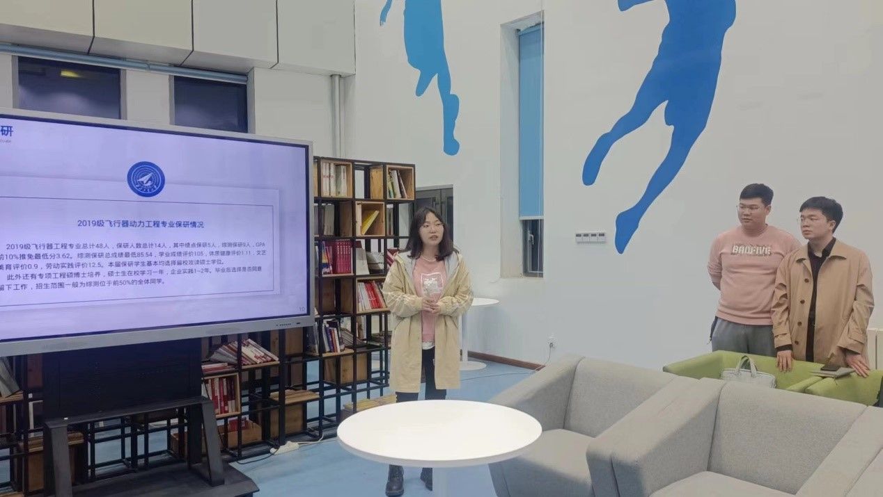 2020级的肖雅婧同学结合自己对于航天六院和航天四院的了解,向大家讲解了很多同学着重关心的飞行器动力工程专业未来的就业前景。她具体向同学们介绍了在西安的主要航天院所的研究方向,并对于同学们提出的有关问题一一做了耐心解答。