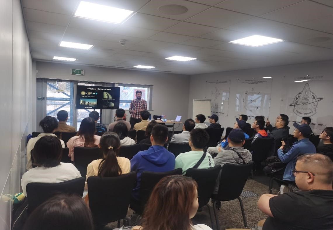 在英国国家航天中心,来自莱斯特大学的Dr. Henrik Melin给我们带来了题为Talk on Webb Telescope的讲座。James Webb是目前天文学家研究太空的最有力工具,Dr. Melin深度参与了MIRI(Mid-Infrared Instrument)的部分研发工作。Dr. Melin简要介绍了MIRI的工作原理,让同学们对这个目前人类的工程学奇迹有了更深入的认识。最后,Dr. Melin援引了Webb望远镜拍摄的一张照片,是一座问号形状的星系,以此勉励同学们通过不断的学习去探索未知宇宙。之后在实验室里,同学们开展了一场创新实践类实验课程,研究采用铜网、钢网和铝箔设计出一种隔热层,能够抵御丁烷焰的炙烤。最终有两组设计成功并在烈焰下存活了三分钟,充分体现了西工大学子在课内课外的知识积累与实际动手能力。
