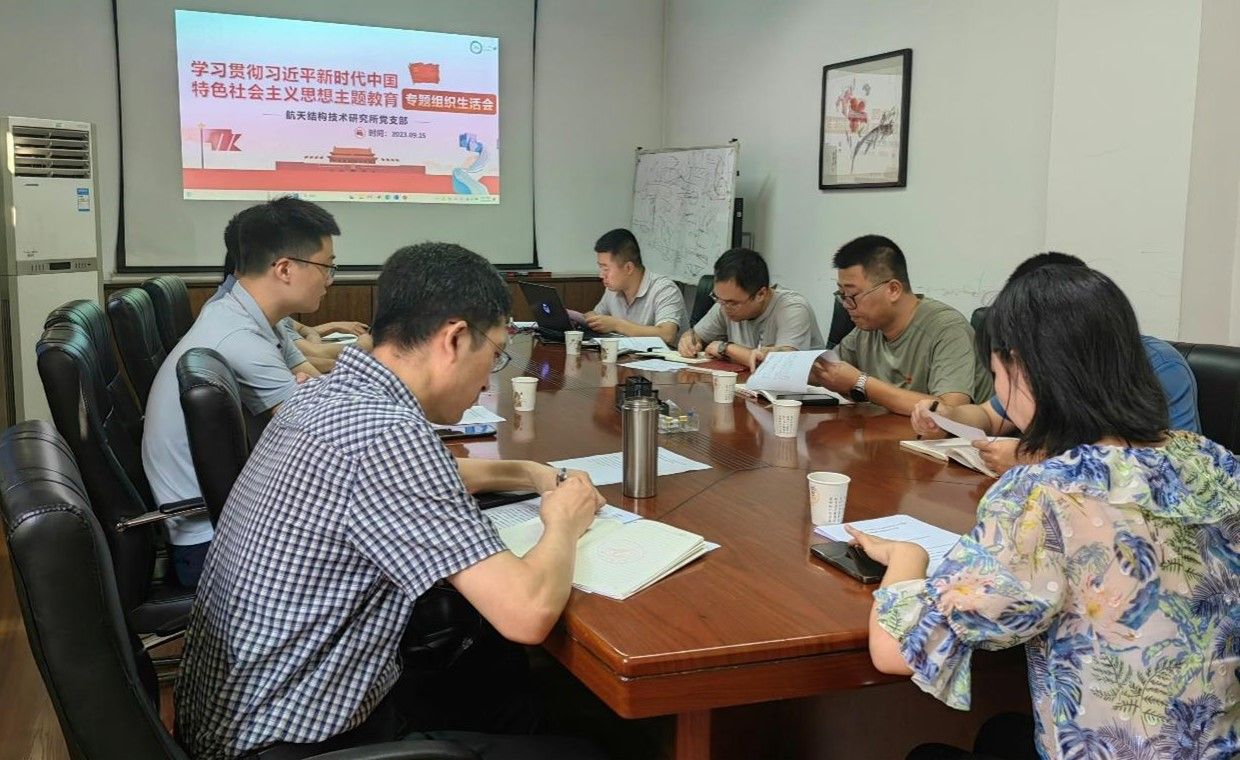 航天结构技术研究所党支部召开主题教育专题组织生活会。会议由党支部书记王时玉主持,学院党委书记、支部联系人黄越参会指导。
