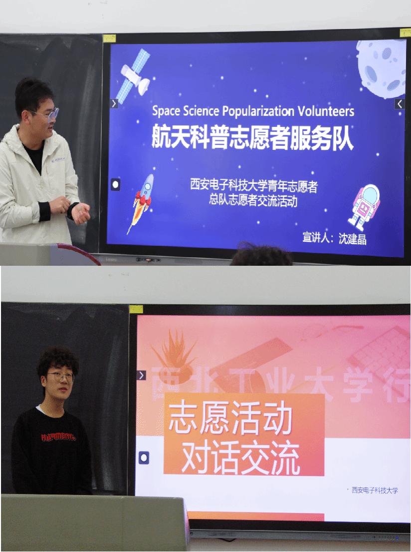 金秋十月,为弘扬航天科普志愿精神,助力两校志愿服务工作,西北工业大学航天科普志愿服务队与西安电子科技大学青年志愿者协会于10月21日,在西北工业大学长安校区开展学习交流活动。