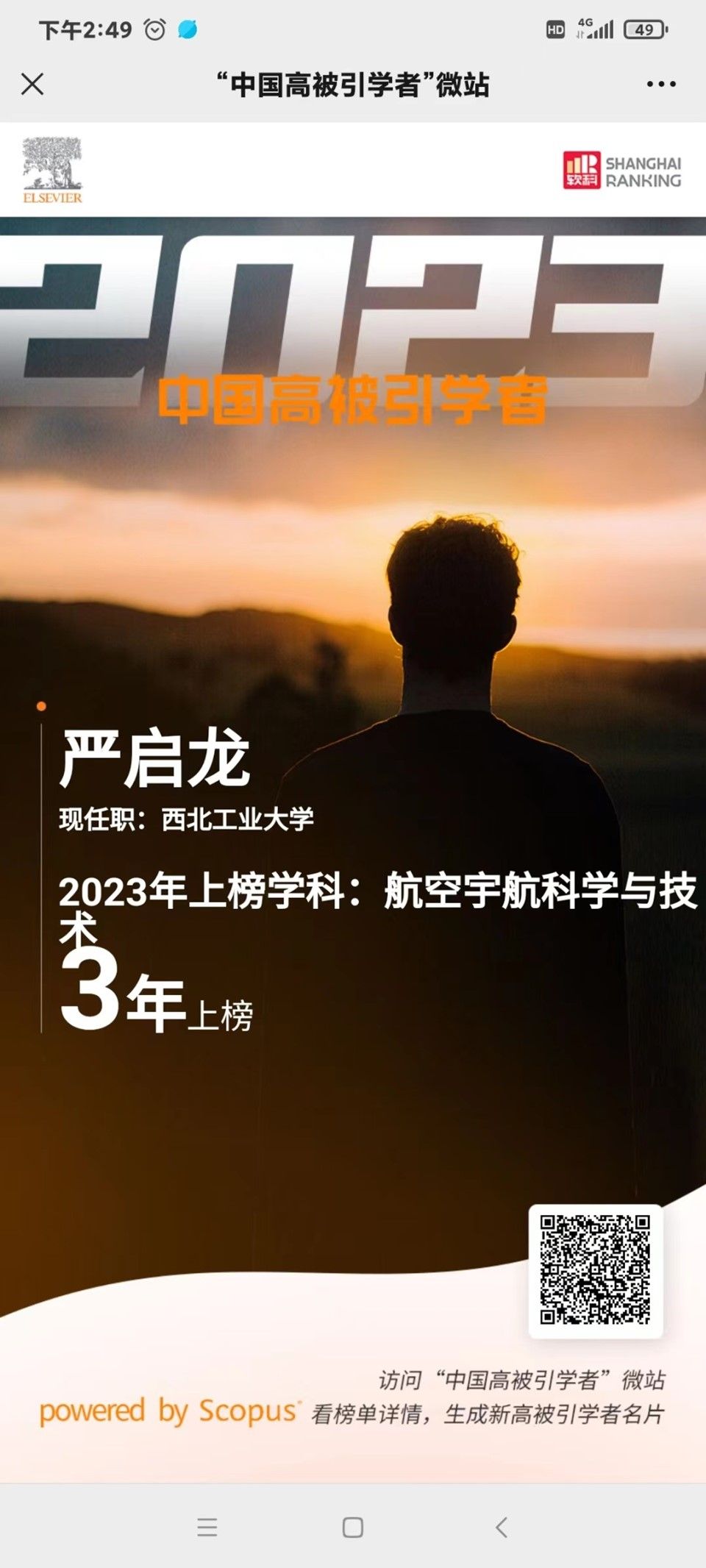 2023年度西北工业大学共有43人次入选,在全国高被引学者所属496所学校、企业及科研机构中排名第32位。