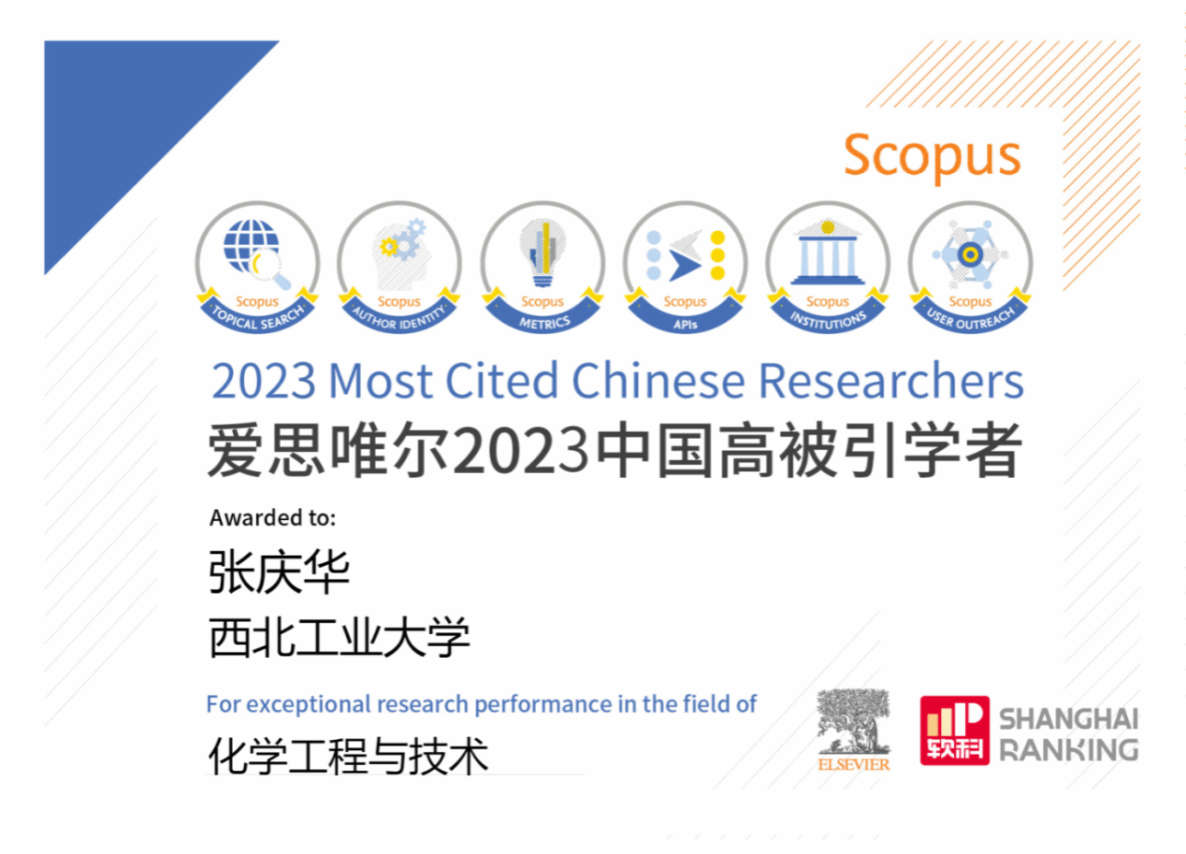 张庆华教授在化学工程与技术学科连续第4年上榜,严启龙教授在航空宇航科学与技术学科连续第3年上榜!