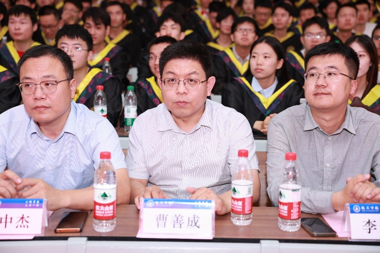 之后,教师代表曹善成发言,在发言中曹老师结合自己的经历,深情回顾了与同学们共同度过的宝贵时光。他衷心祝愿每位毕业生在新的人生征程上,坚守初心,秉承航天精神,为国家航天事业贡献智慧和力量。希望大家不怕辛劳、不畏艰难,不惧挑战,书写属于自己的辉煌篇章。