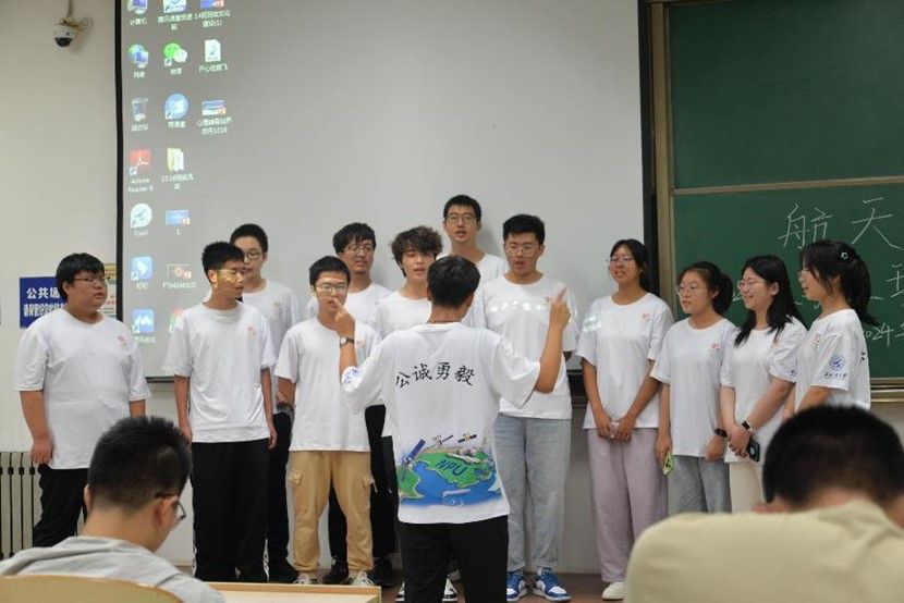 随后,各参赛班级按顺序,就班级管理、班规、班训、班徽、班服、班级活动等方面展开介绍,以唱歌、朗诵、幕布剧等多种形式展示班级风采。同学们认真准备、热情高涨,展现出航天学子团结一心、积极向上的精神风貌。