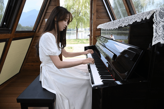 最后,2022级本科生李玉欣在学校草坪钢琴木屋,以独奏《梁祝》、《泰坦尼克号》,为今日的“老青传承”艺术文化交流活动画上圆满句号。