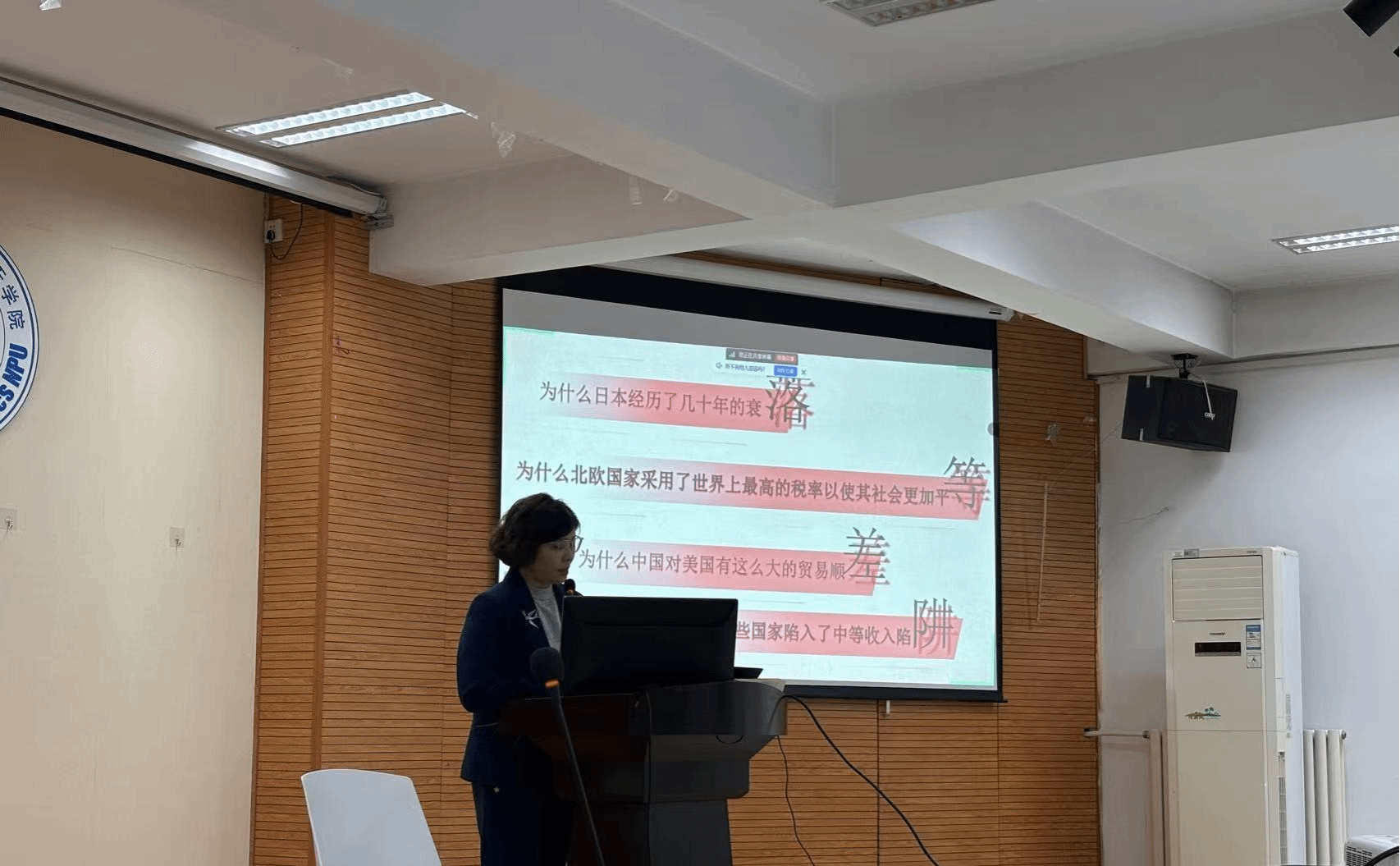 11月14日,邀请学校党代会宣讲团成员、马克思主义学院代家玮副教授讲授《完善推进高质量共建“一带一路“机制》的主题宣讲。代老师为大家介绍了一带一路的进展与成就,阐述了共建”一带一路“面临的挑战,包括当今世界经济复苏乏力、”一带一路“沿线国家的政策不确定性增大、部分国家制造国际舆论压力等,探析了构建互通网络、构建立体互联、推动科技创新等推动一带一路高质量发展的建议。