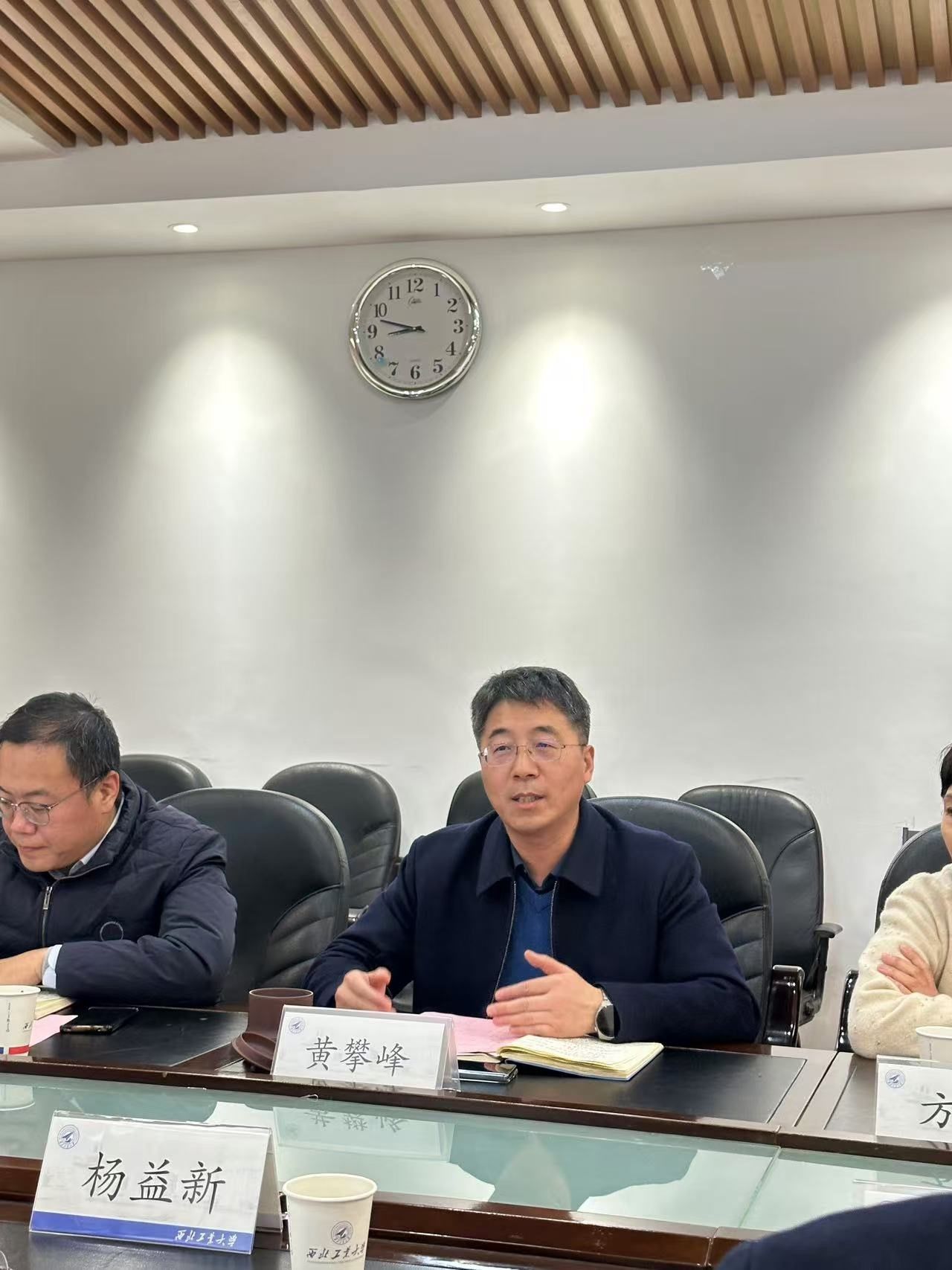 黄攀峰代表学院对杨校长一行来院调研指导表示热烈欢迎,对学校教务部长期以来对学院人才培养的关心关怀表示衷心感谢,希望通过此次调研活动,进一步促进学院“总师育人文化”持续走深走实,引领学院的航天“总师型”人才培养。孟中杰从文化传承、走深走实思路,具体举措、下一步工作计划四个方面对学院“总师育人文化”走实走深情况进行汇报,重点围绕七种素质和能力培养,从建设思政育人新模式、铸牢扎实育人基础、开拓宽广育人视野、探索创新育人方案、打造人文育人特色五个方面汇报了学院的特色做法。