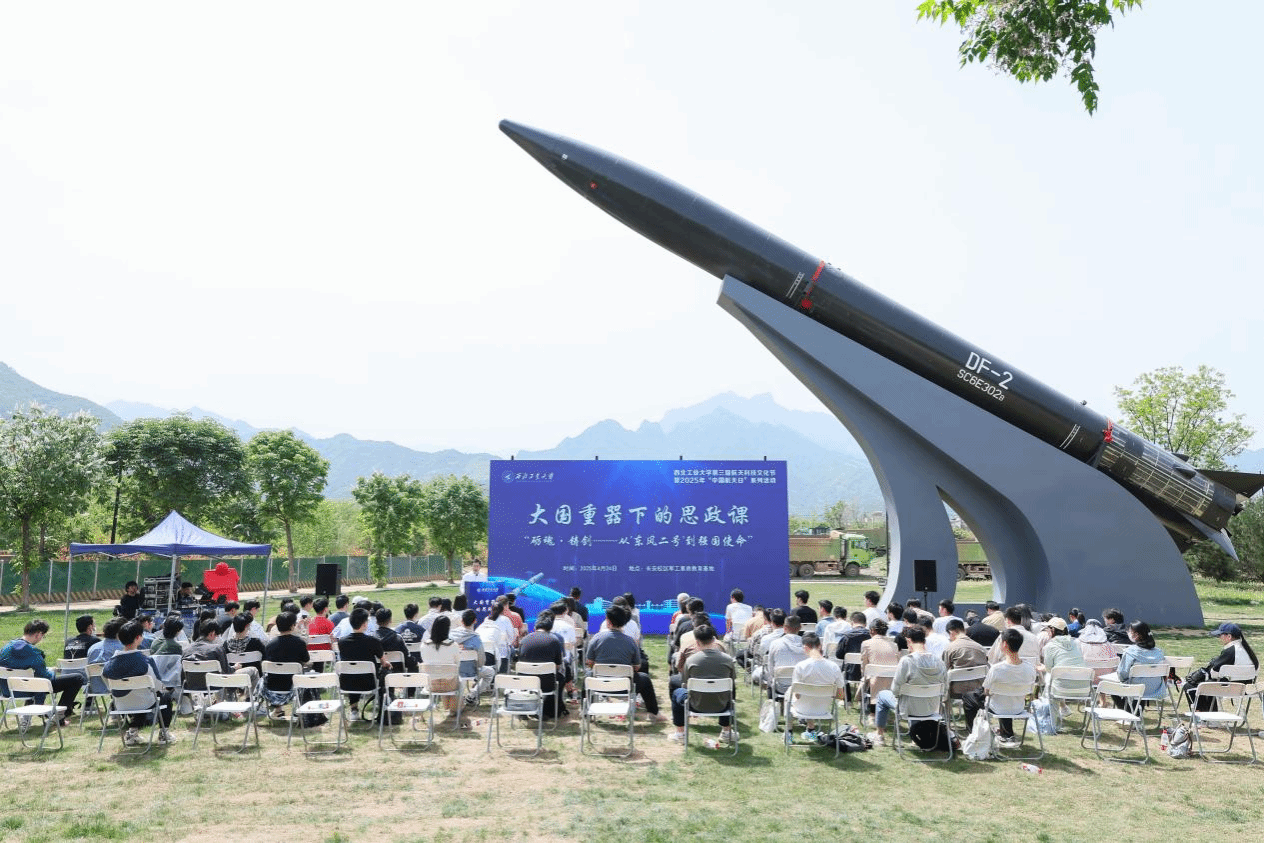 在长安校区军工素质教育基地隆重举办“大国重器下的思政课”。活动以我国首型自主研制的“东风二号”导弹实物为教学载体,邀请航天专家、马院教师、免费直播