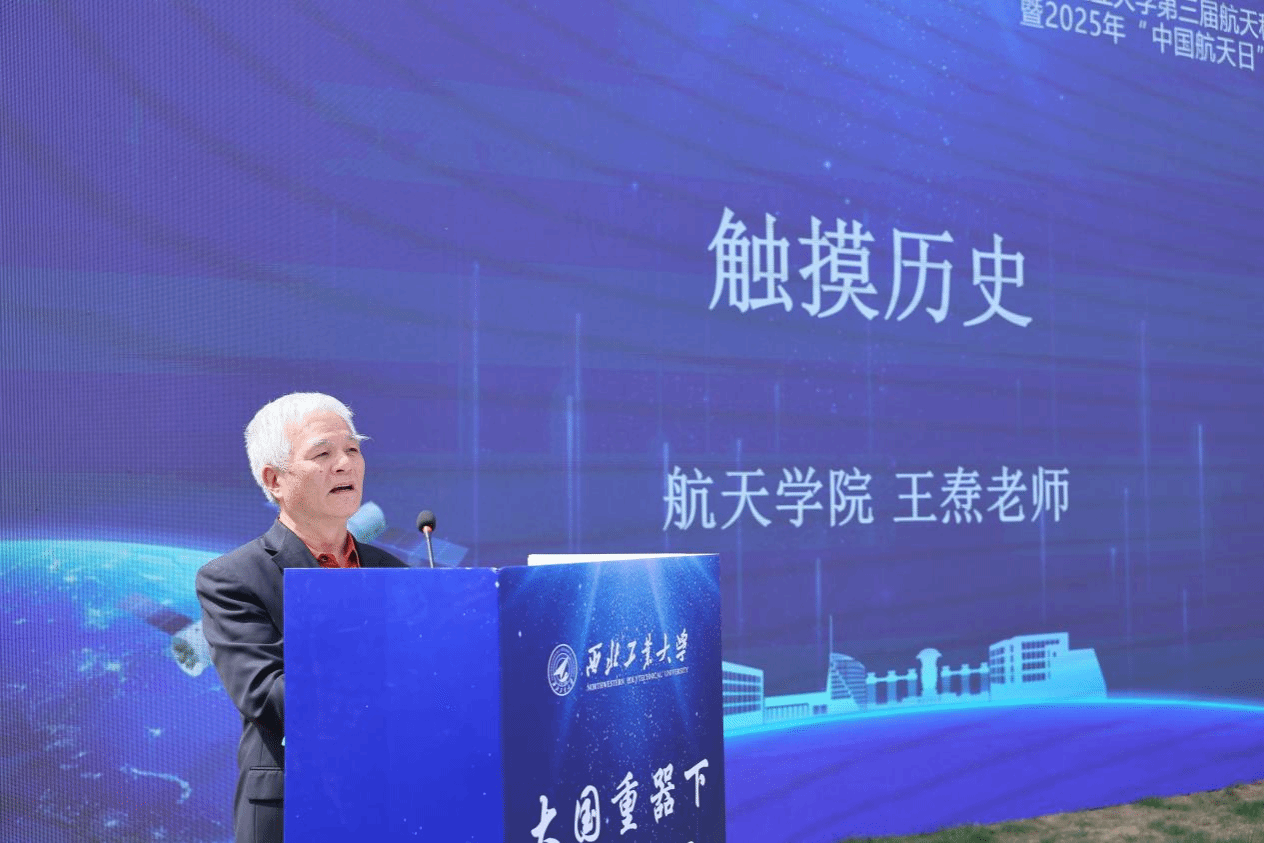 活动第一篇章“触摸历史”,与会人员共同观看纪录片《东方巨响》节选,回顾“东风二号”导弹成功发射的战略意义。作为我国首型自主研制的弹道导弹,“东风二号”的研制历程标志着中国战略导弹研制史从仿制到自主创新的重大跨越,彰显了科技自立自强的民族志气。“银发宣讲员”王焘老师深情讲述“东风二号”进驻校园背后的故事,从聂荣臻元帅决定将完成静力试验的“东风二号”赠予西工大,到导弹从北京运输入驻西工大。这枚历经六十余载风雨的“大国重器”,已成为激励一代代西工大人逐梦苍穹、投身科研的精神丰碑。