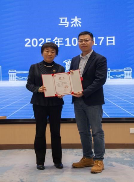 党委副书记韩冬同志向马杰老师颁发免费直播