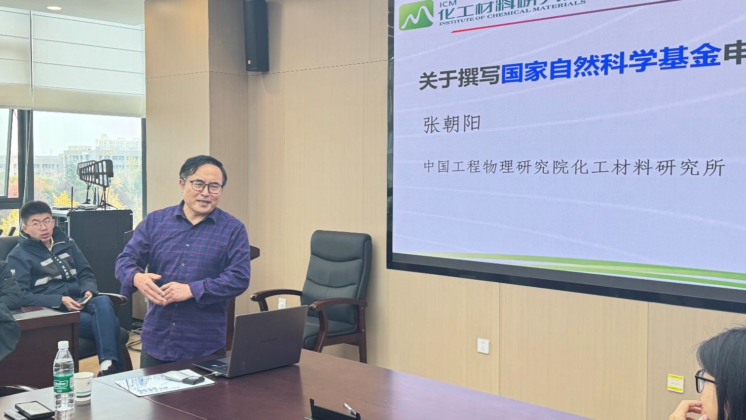 组织召开2026年度国家自然科学基金B代码及一般类项目申报辅导会。会议特邀中国工程物理研究院化工材料研究所张朝阳教授担任主讲嘉宾,学院张庆华教授主持会议,各学科方向拟申报教师及博士后参加了本次辅导。