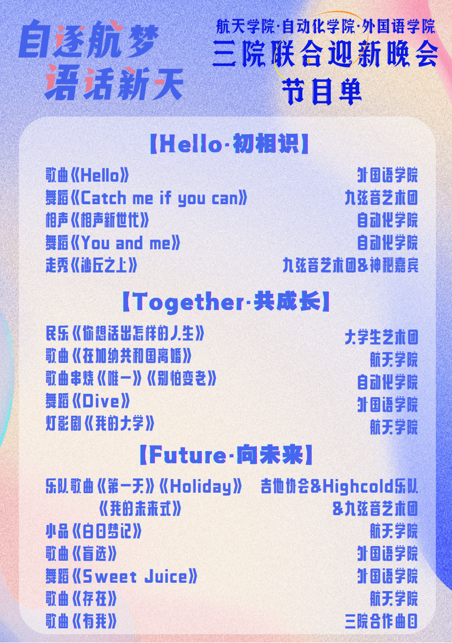 三院联合迎新晚会节目单
