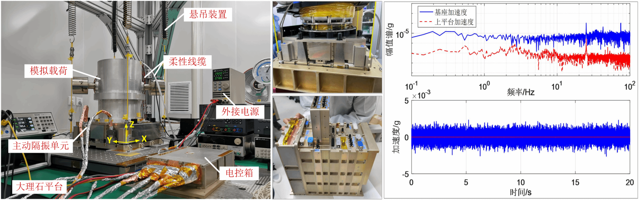 图1 空间光电系统微振动抑制单元及空间站梦天舱试验结果
