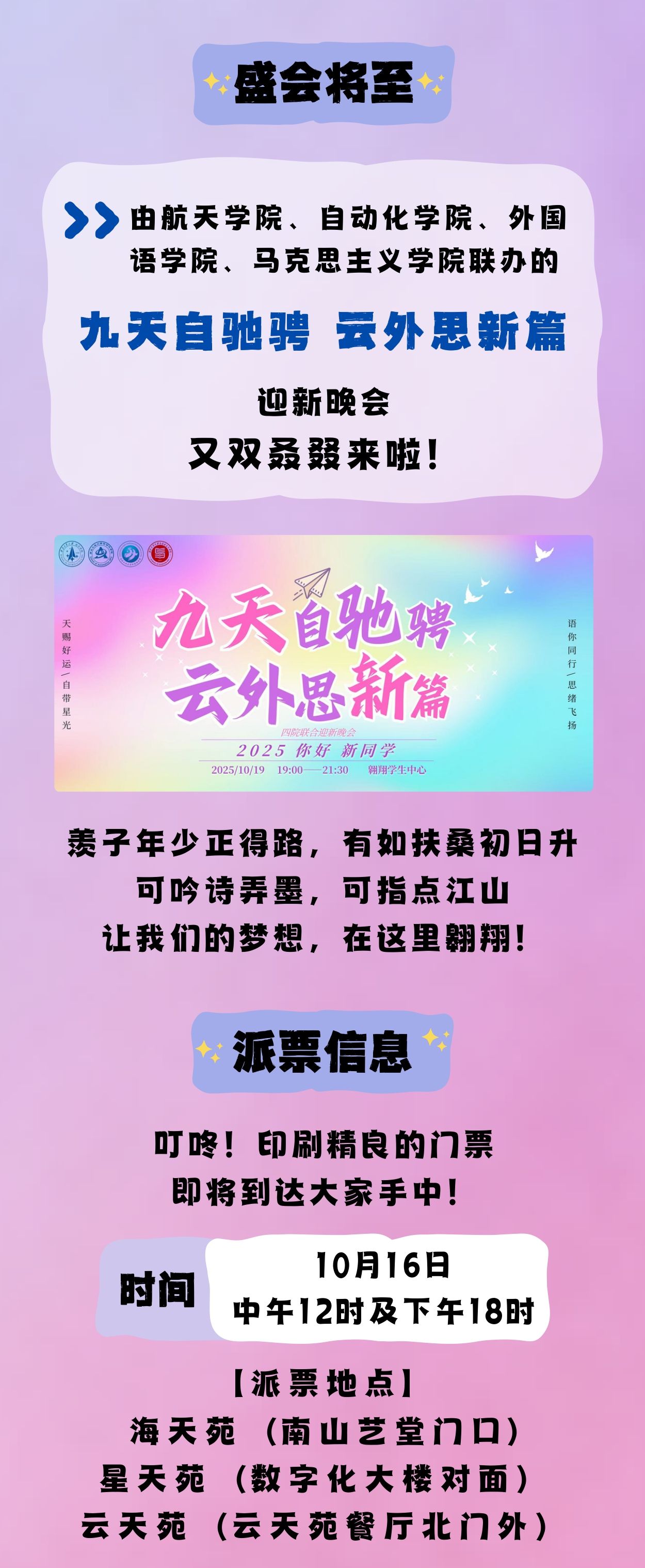 预热档|“九天自驰骋 云外思新篇”四院联合迎新晚会来啦!文末有惊喜!!!