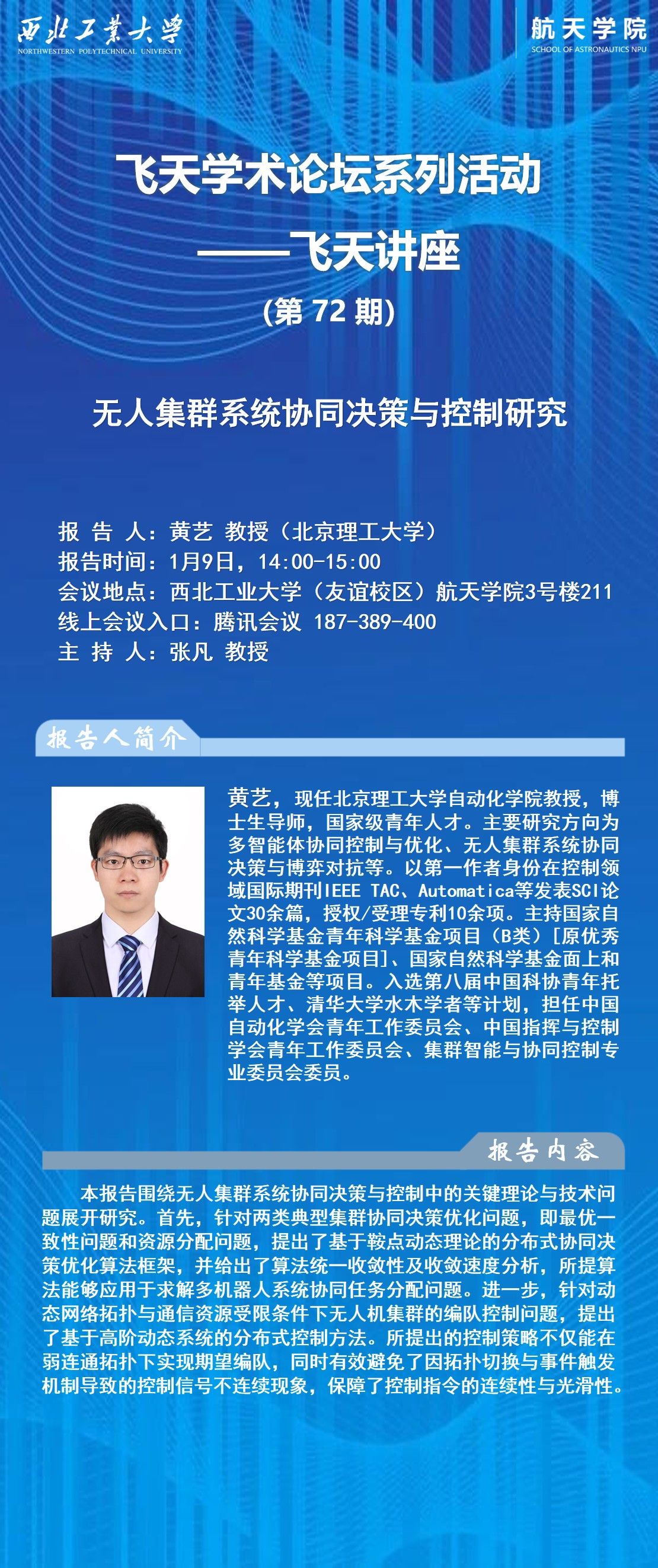 免费直播 论坛系列活动第72期:无人集群系统协同决策与控制研究