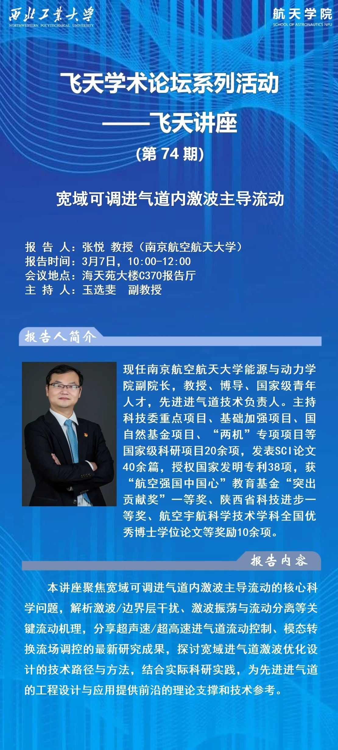 免费直播 论坛系列活动第74期:宽域可调进气道内激波主导流动