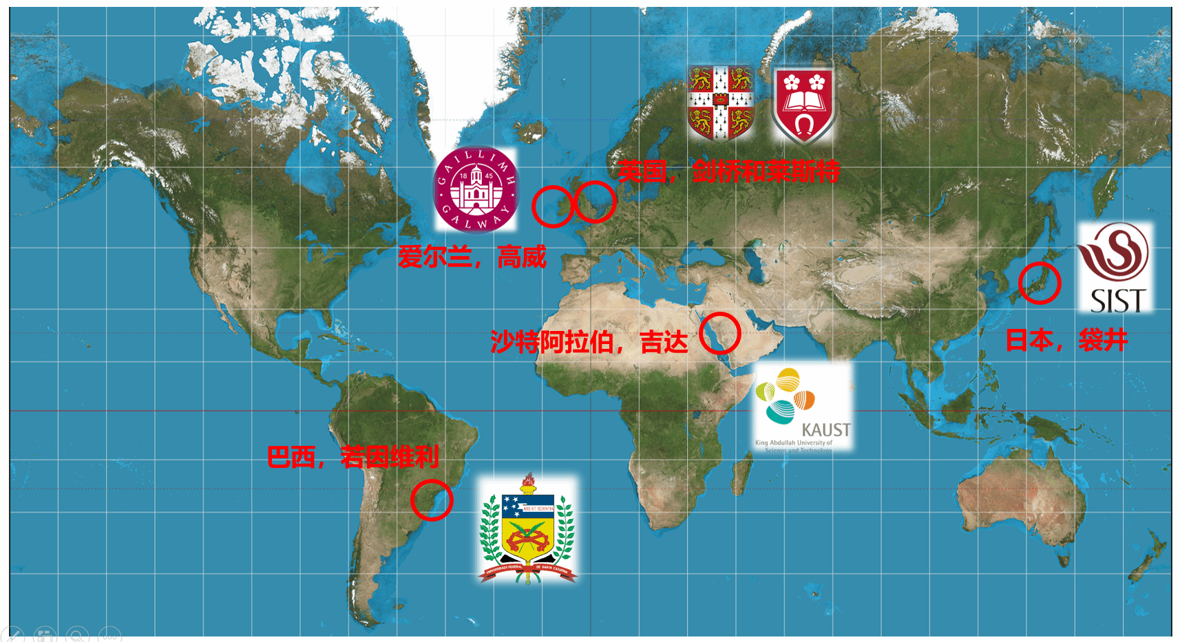 图1. 暑期出国(境)学校及地理位置示意图