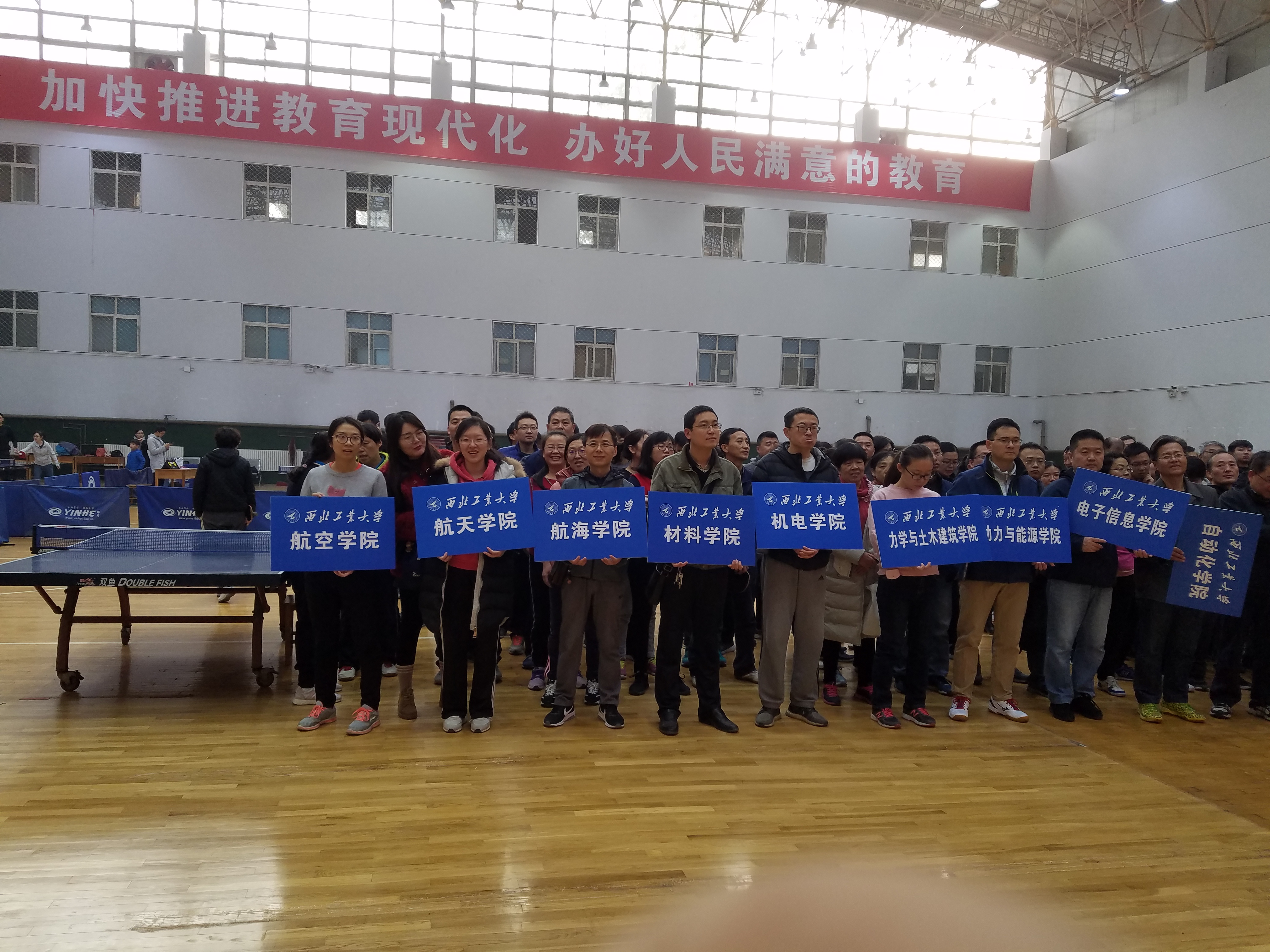 为了深入开展全民健身活动,丰富教职工业余文化生活,展现教职工团结拼搏,积极进取的精神风貌,西北工业大学校工会联合体育部举办的教职工乒乓球团体赛于20191123日至24日在友谊校区翱翔体育馆圆满举行。本次乒乓球团体赛以 “当好主人翁,建功新时代” 为主题,通过举办比赛进一步促进全院教职工积极参与体育运动。
