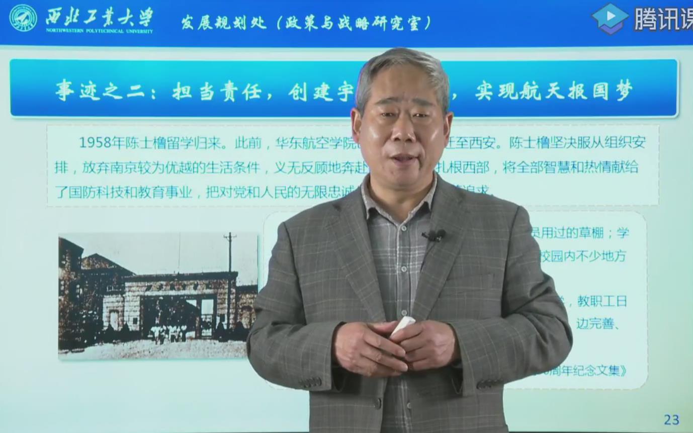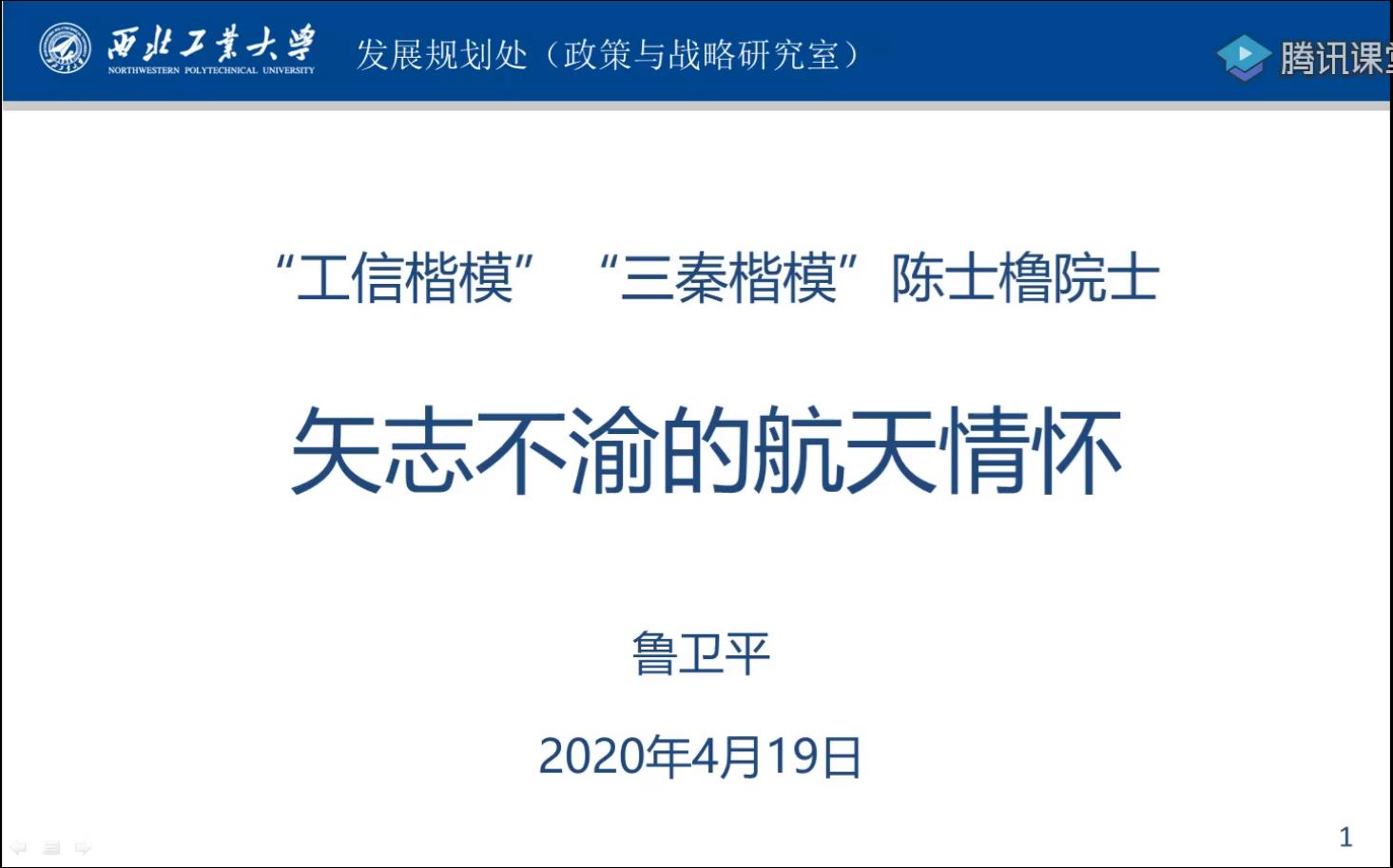 主办,西工大青年宣讲团、西北工业大学研究生会承办,特别邀请了西北工业大学政策与战略研究室主任兼发展规划处副处长、《剑指苍穹—陈士橹传》主要作者鲁卫平担任主讲人,讲述陈士橹院士“一个甲子的坚守”。