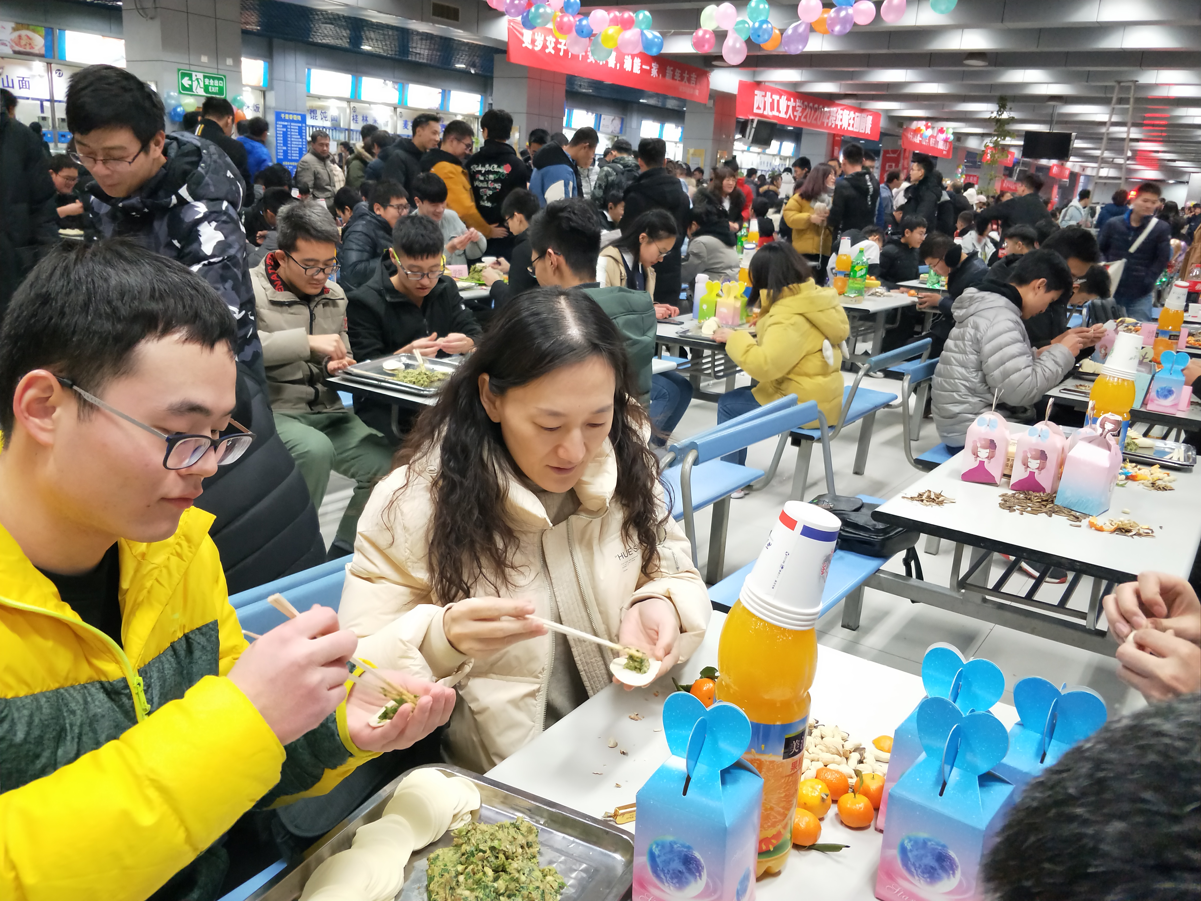 夜幕降临,万众瞩目的跨年活动拉开帷幕。跨年团圆餐在两校区学生餐厅拉开帷幕,免费直播
