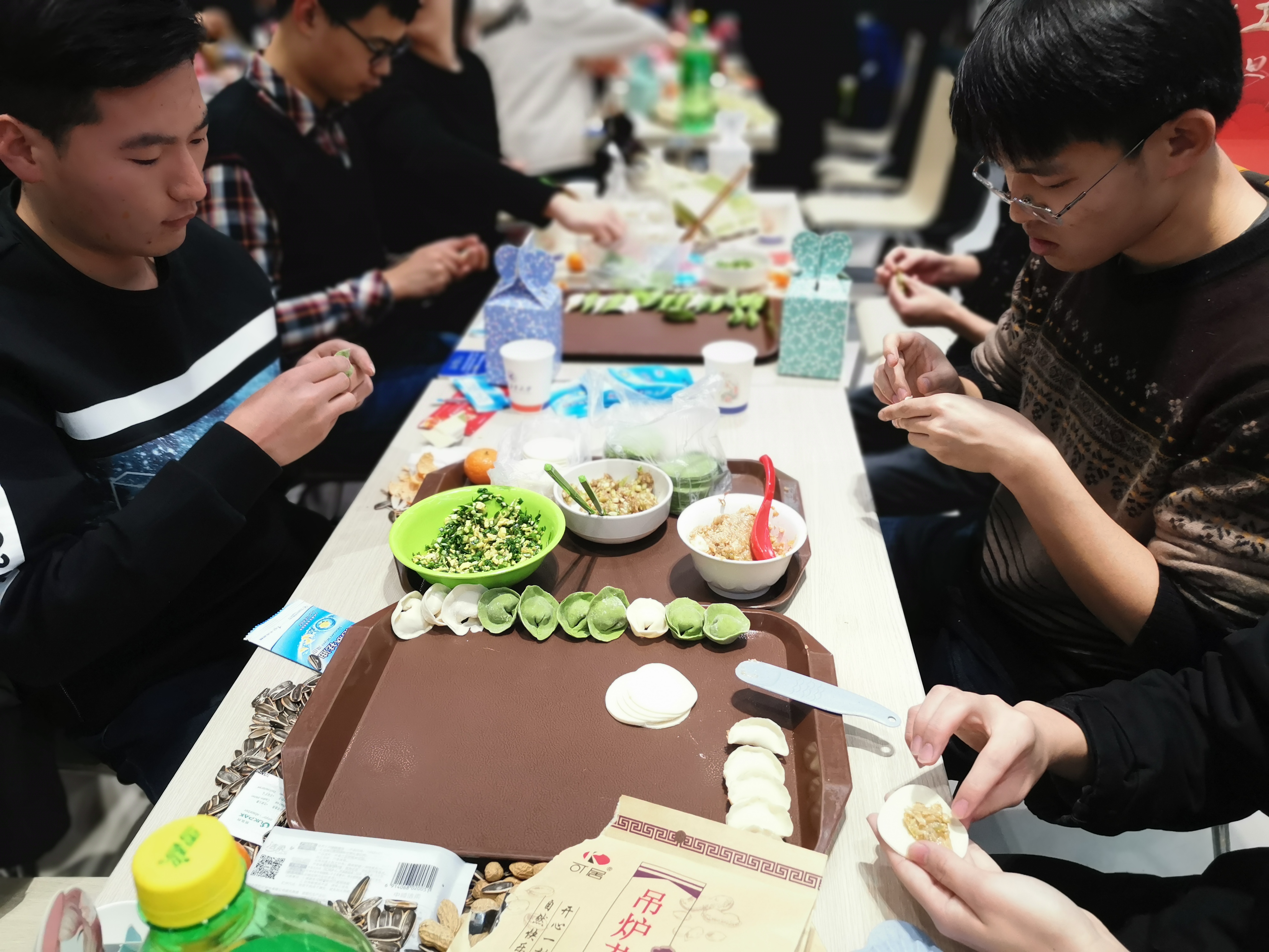 师生领取了饺子皮和饺子馅后,围坐在一起,开始了自己的包饺子之旅。免费直播