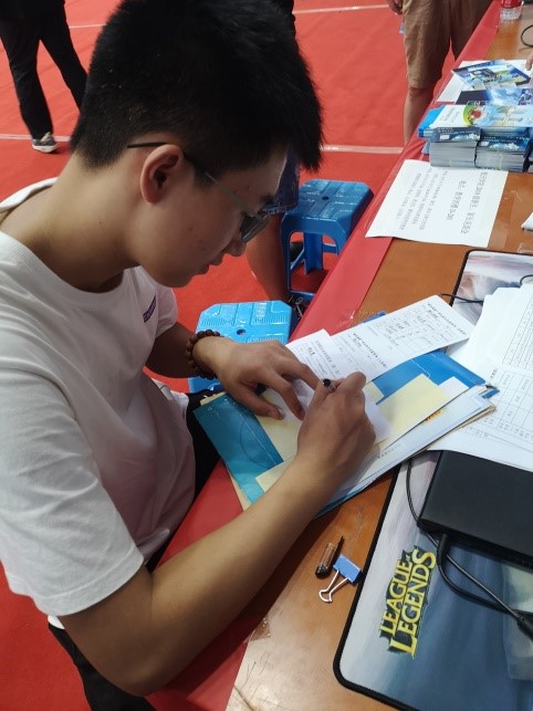 迎新工作在三个地点同步进行:内场(体育馆副馆)、外场(免费直播