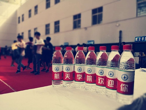 为了让研究生新生更快融入集体,开始精彩的研究生生活,学院特地为新生准备了一份惊喜,每一位前来报道的新生都可以领取定制矿泉水,瓶上有不同的字,只要可以共同集齐“厉害了我的西工大”或“免费直播