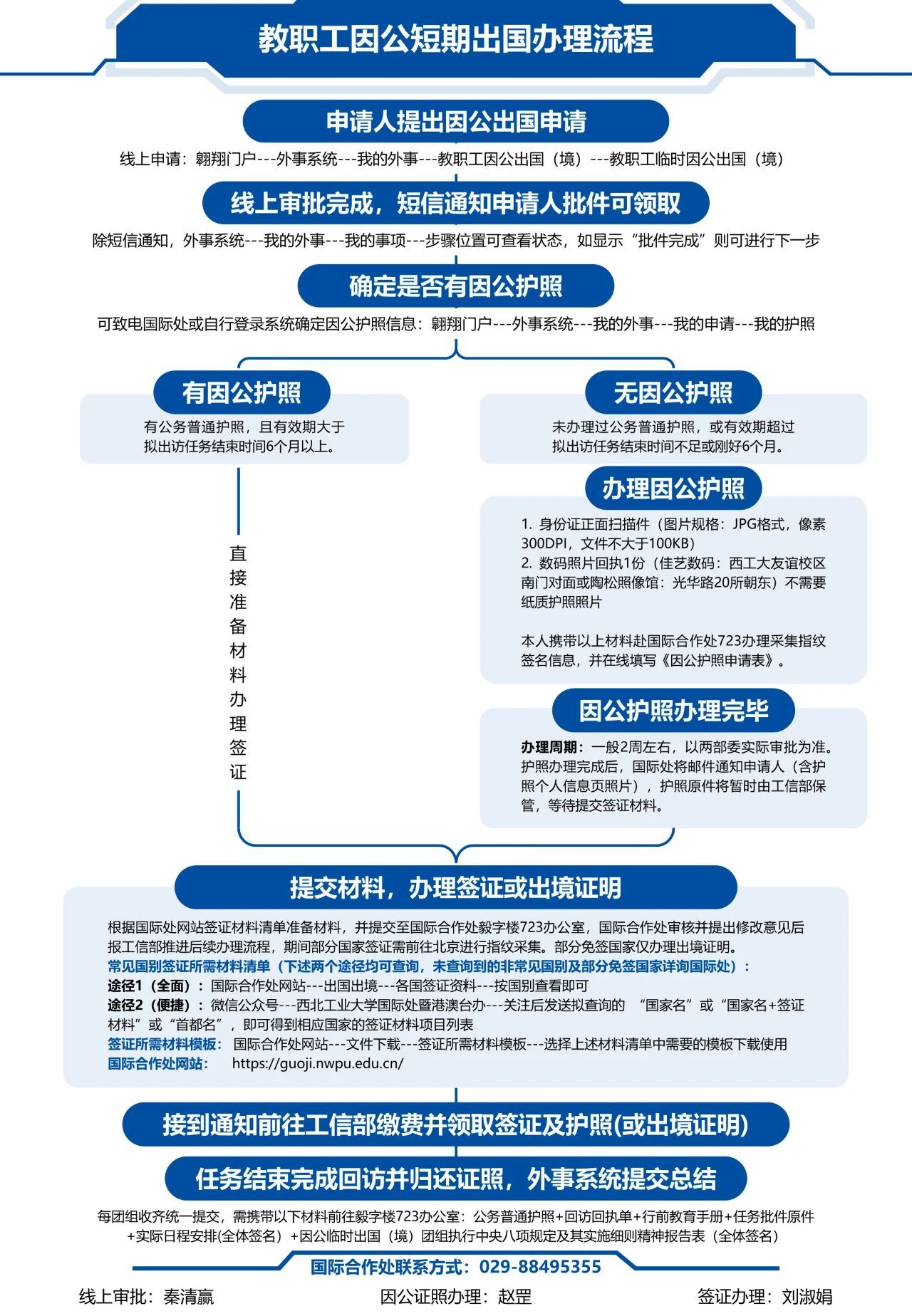 (1)进行出访完成后手续办理,提交相关材料;